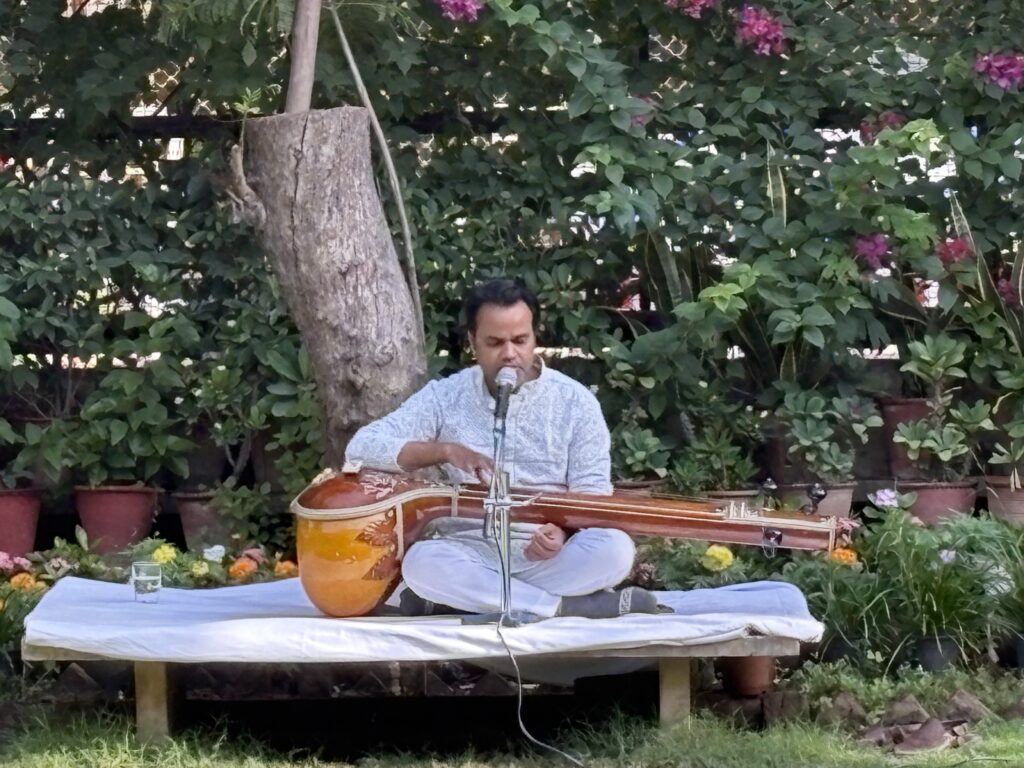Breakfast in the garden to the dulcet tones of a citar player.