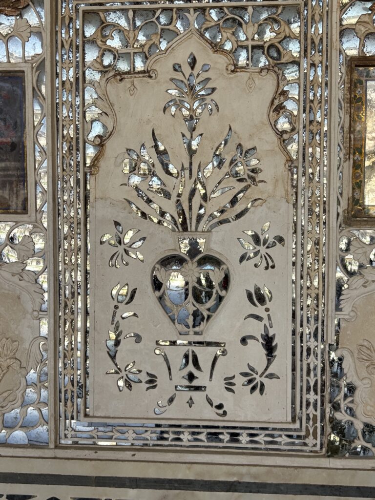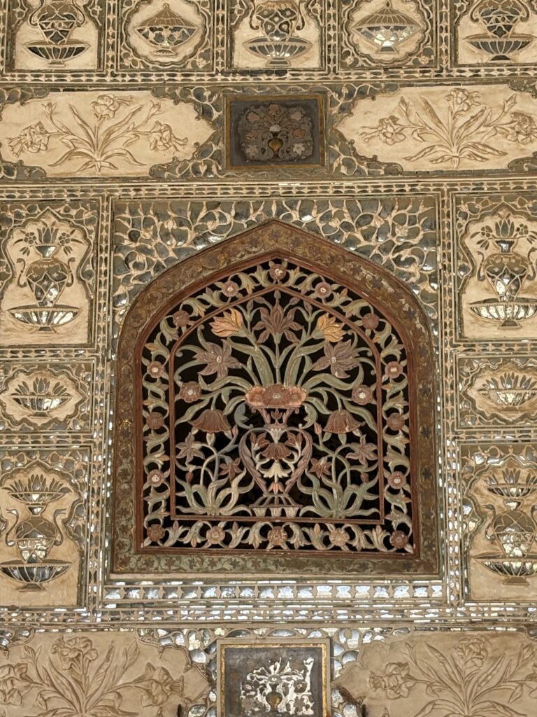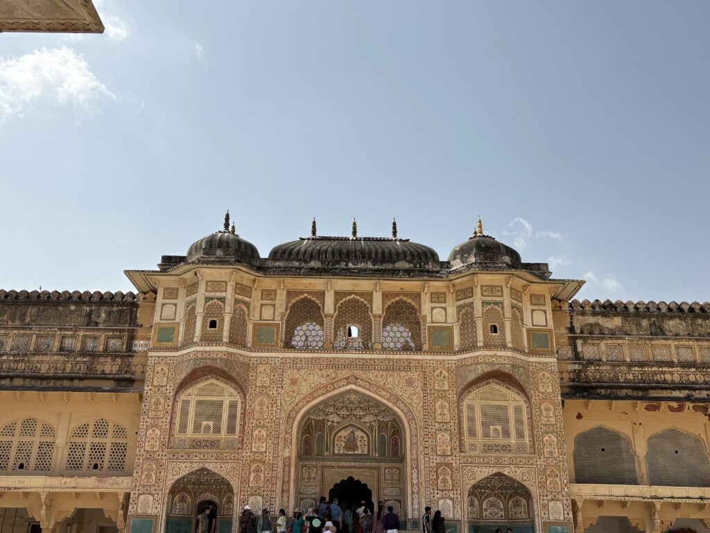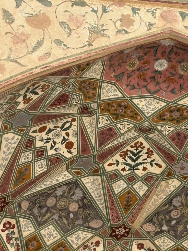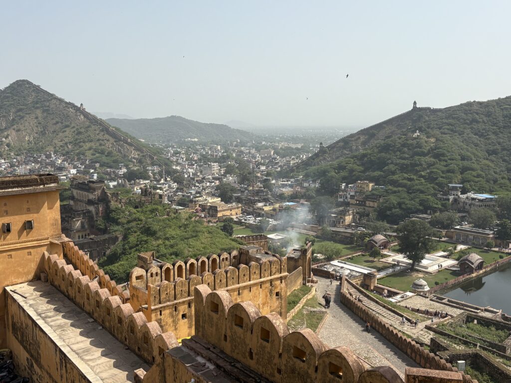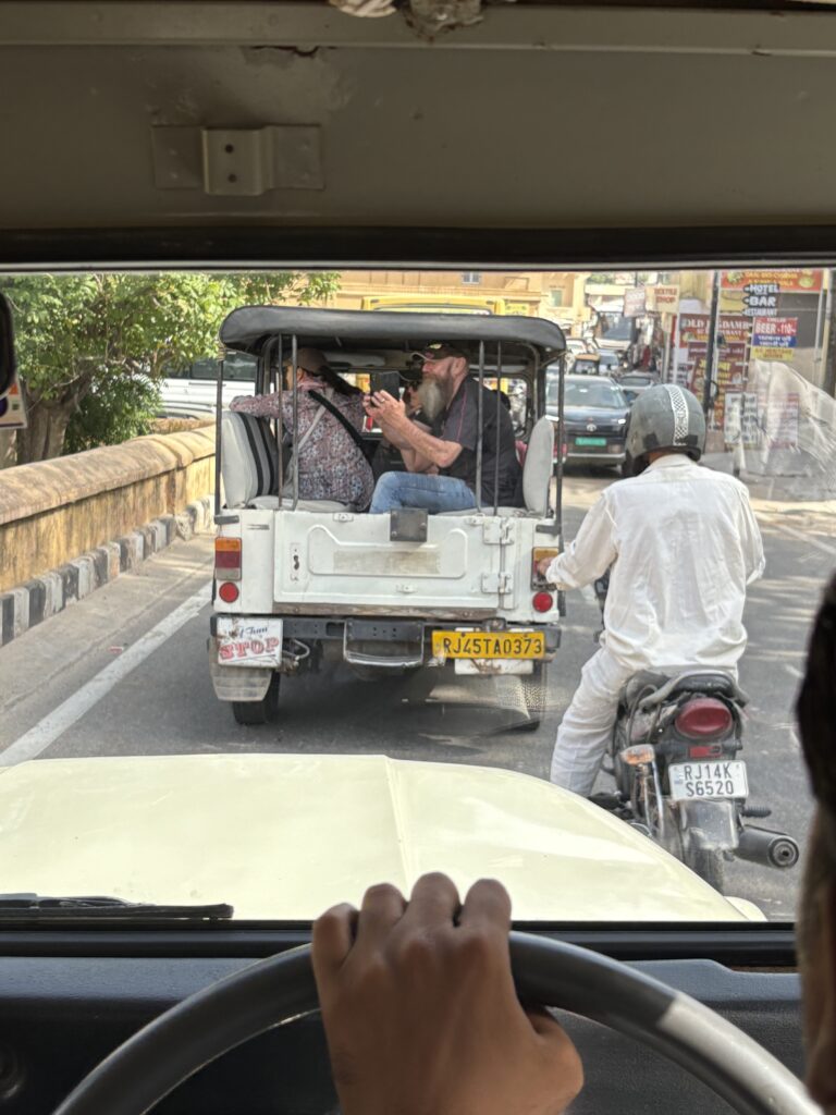 Some of our group had an early start hot air ballooning. We all set off together at 9.15 in the minibus for the Amber Palace way up on a hill. The bus could only go so far and then we took to jeeps for the rough steep climb to the top.